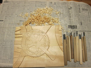 2013-03-02 木彫日記 −チェーンホイール&クランクを彫る− 11日目 木彫 自転車で走りに行かなかったので、木彫の続きをやった。外周を彫っていっているものの、なかなか深く彫り込めない。いつになったら完成するんだろ。 明日はお新車披露目ライドのようだ。置いていかれないように、久々にフル・カーボンを持ち出そうかな...。